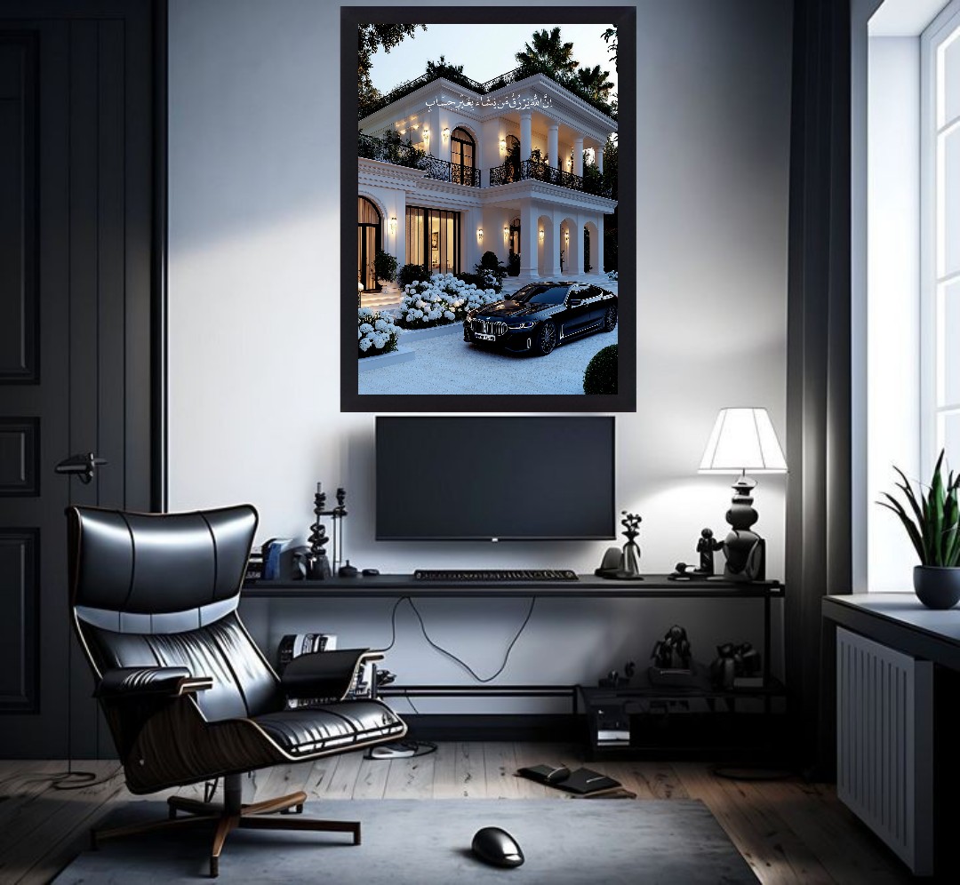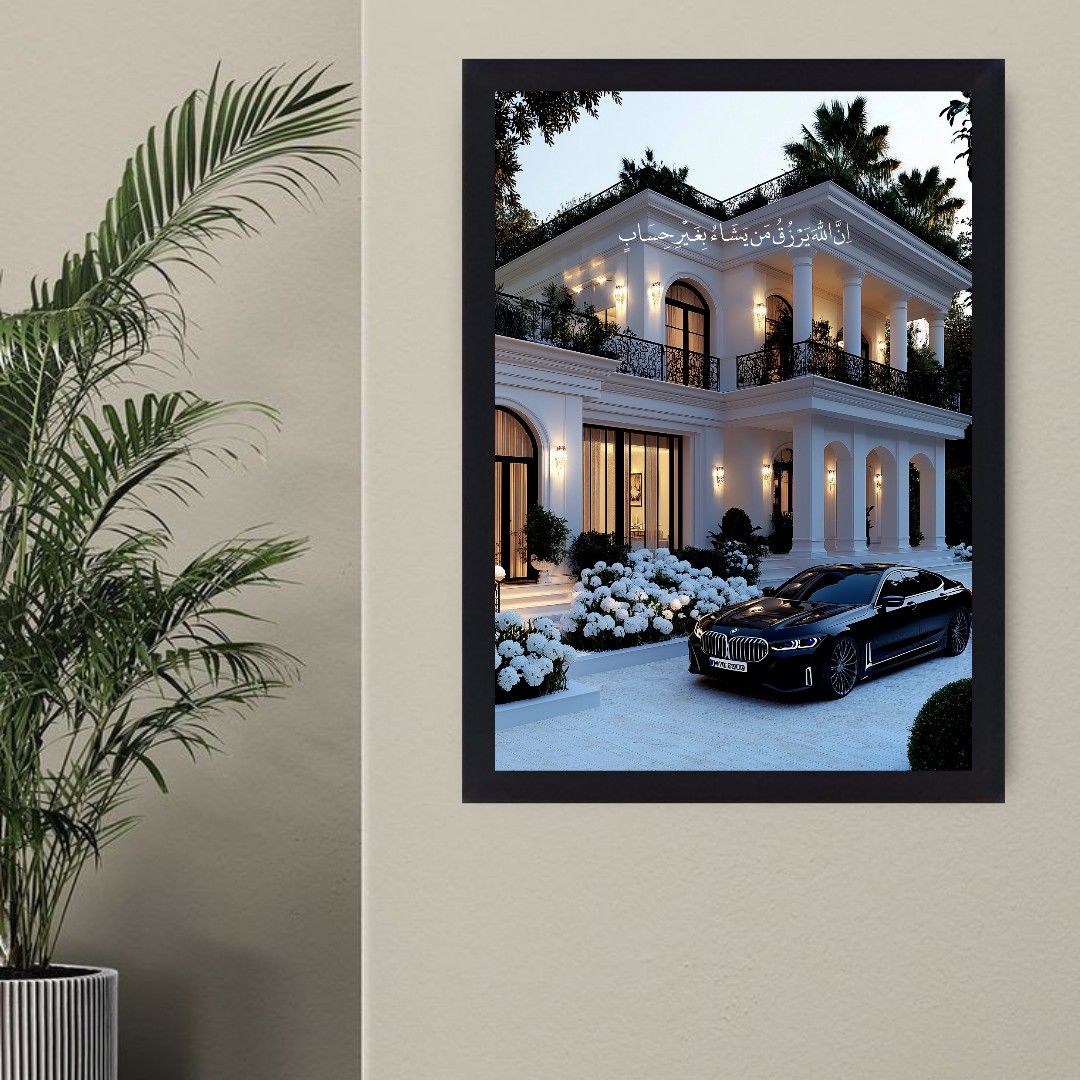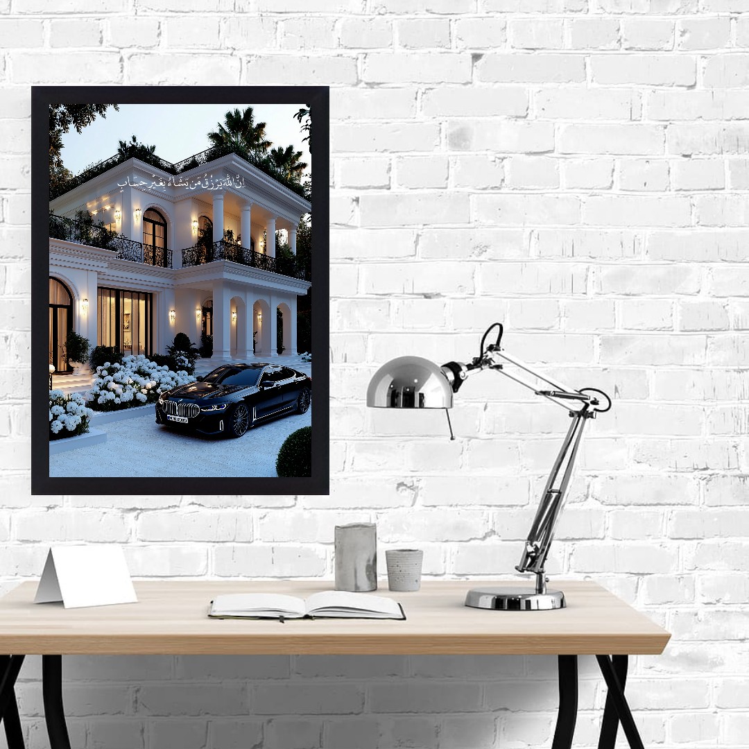 در این اثر، یک ویلای مدرن سفید با نورپردازی شبانه در کنار خودروی سوپراسپرت قرار گرفته که نماد ثروت، آزادی و رسیدن به اهداف بزرگ زندگی است.