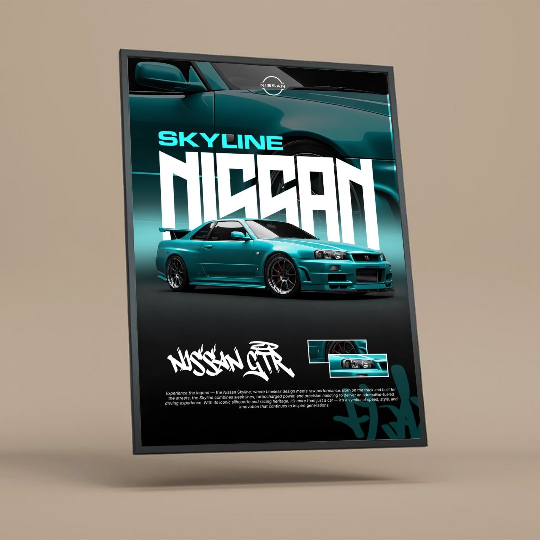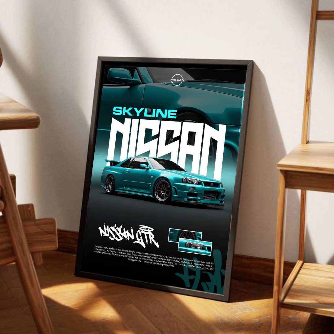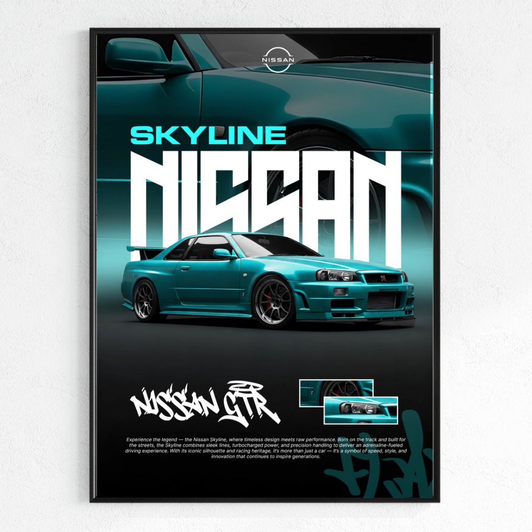 تابلو دکوراتیو Nissan Skyline GTR ادای احترامی به یکی از افسانهایترین خودروهای تاریخ ژاپن و دنیای JDM است. طراحی جسورانه، رنگ خاص سبز-آبی و تایپوگرافی قدرتمند، این تابلو را به انتخابی ایدهآل برای افرادی تبدیل میکند که عاشق سرعت، اصالت و سبک خاص هستند.
