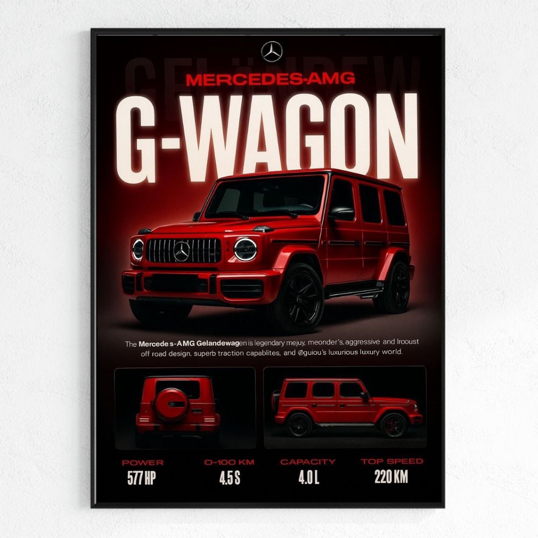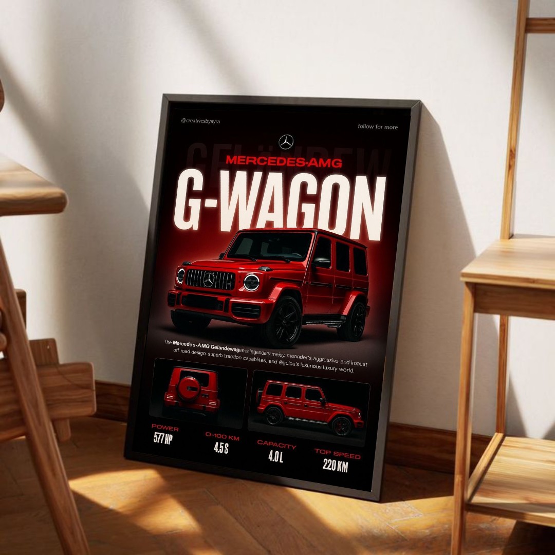 تابلو دکوراتیو Mercedes-AMG G-Wagon انتخابی خاص برای عاشقان خودروهای لوکس، قدرت و طراحی جسورانه است. این تابلو با نمایش خودروی افسانهای G-Class AMG در رنگ قرمز خیرهکننده و بکگراند تیره، حس قدرت، پرستیژ و لاکچری را به فضای شما منتقل میکند.