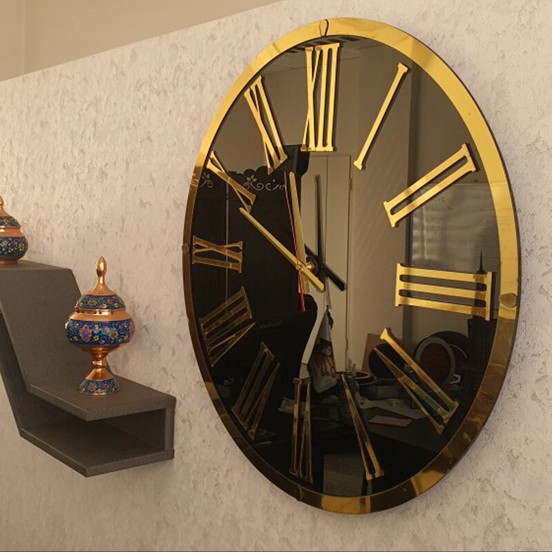 ساعت های دیواری آینه ای طراحی جدیدی از تلفیق آینه و ساعت است به گونه ای که بخش زیادی از صفحه را آینه دودی رنگ تشکیل داده و اعداد رومی بر روی آینه قرار گرفته است. این ساعت ها قابل استفاده در تمام فضاهای منازل، فروشگاه ها، سالن ها و.. است و بخصوص در فضاهایی که از نورهای تزئینی مانند نورپردازی در کناف سقف، هالوژنها و لوسترهایی با تعداد شعلههای نوری زیاد استفاده میکنند، انعکاس بیشتری ایجاد میکند و درخشش بسیار زیبایی در زمان روشنایی نورها به چشم میآید. ابعاد این ساعت ها 60×60 بوده و از ویژگیهای این ساعت دیواری، میتوان به استفاده از آینههای شفاف و مرغوب که انعکاس بالایی داشته و موتور این ساعت که از نوع آرام گرد اصل تایوانی است اشاره کرد. لازم به ذکر است این ساعت به راحتی بر روی دیوار قابل نصب بوده و قابل جابجاییست .