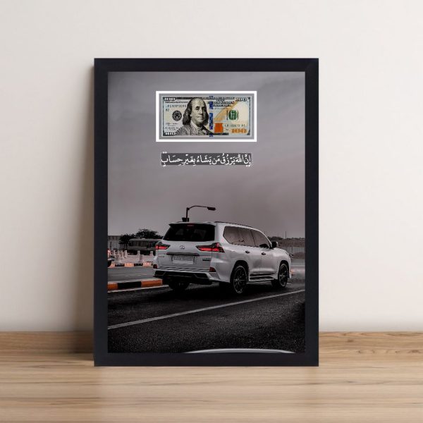 تابلو بکلایت آیه رزق | ماشین لکسوس و دلار