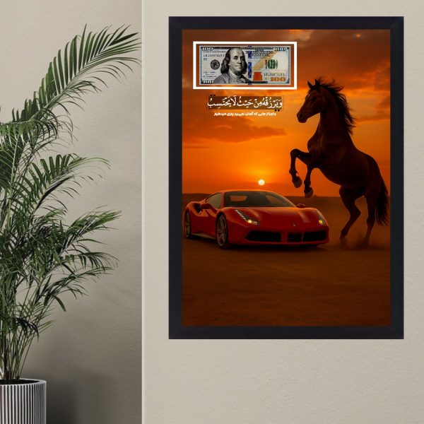 تابلو بکلایت آیه رزق | اسب اصیل و دلار