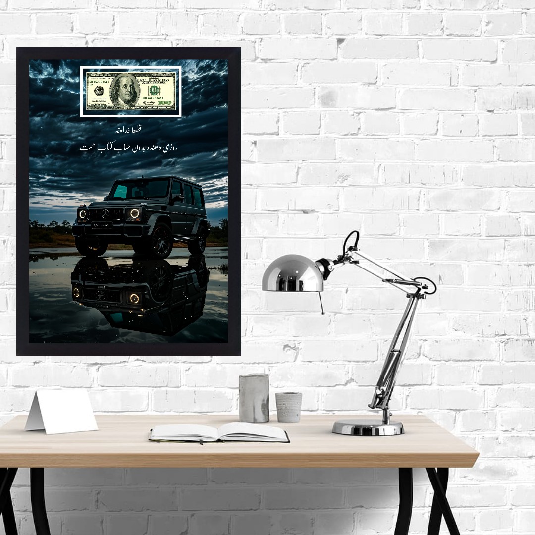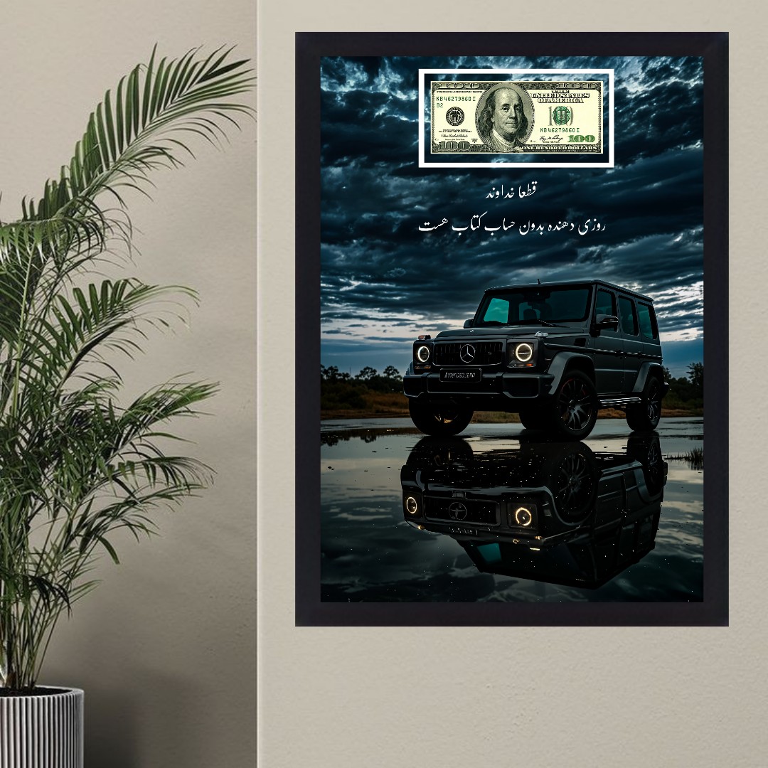 تابلو شکرگزاری مدل روزی دهنده خدا طرح دلار و بنز کد 05