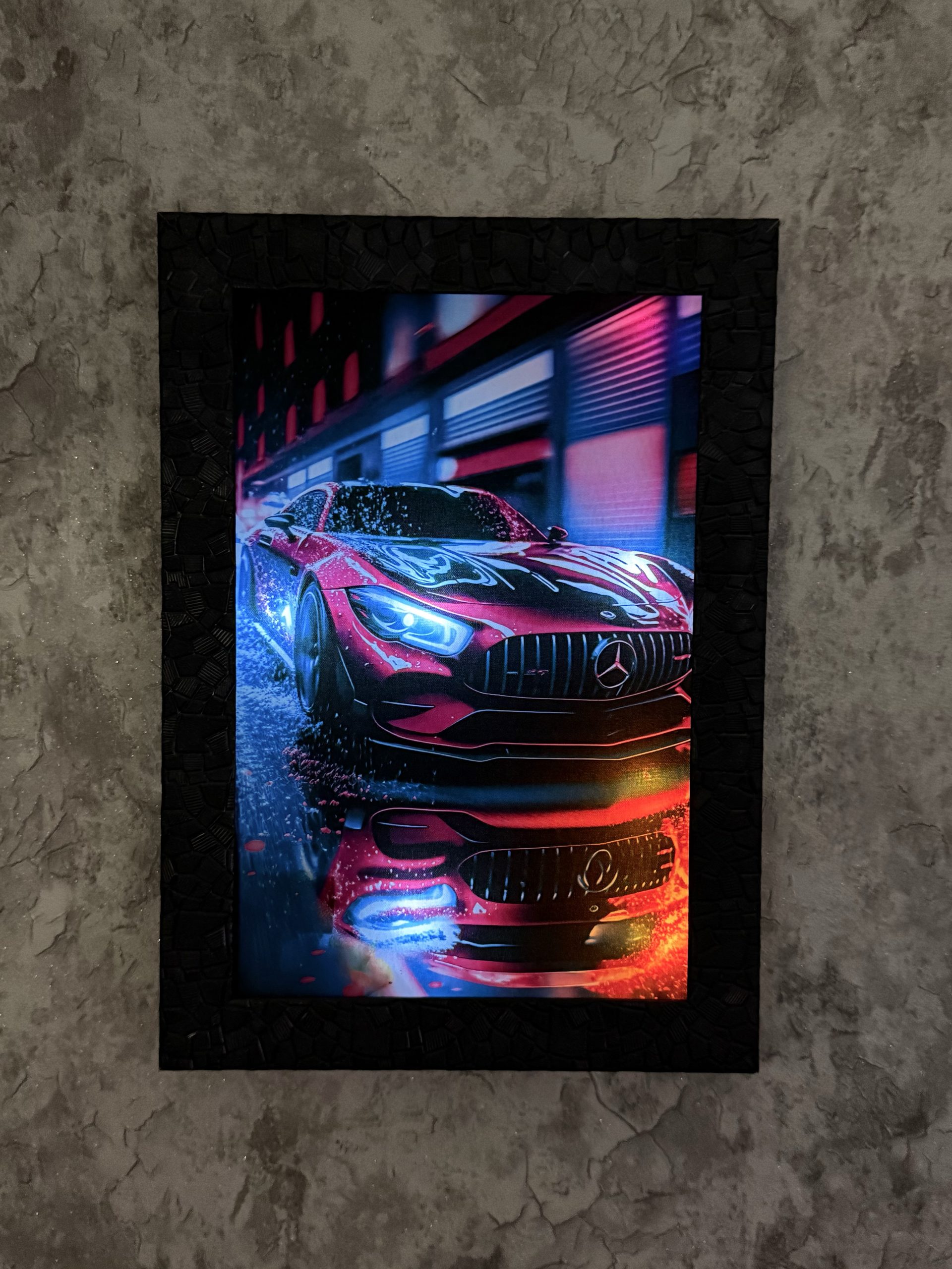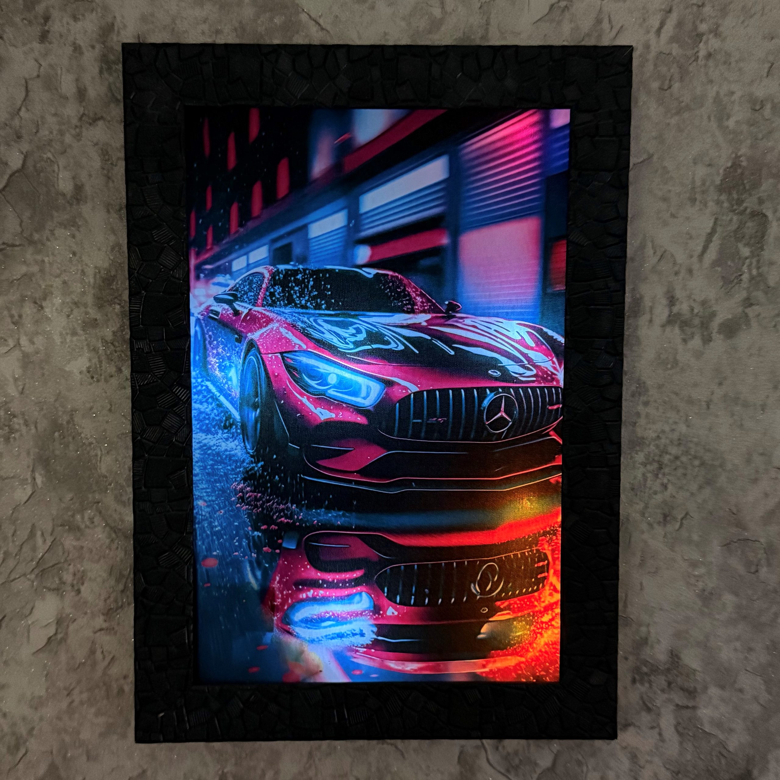 تابلو نوری طرح ماشین اسپرت مرسدس بنز انتخابی لوکس و مدرن برای علاقهمندان به خودروهای خاص است.