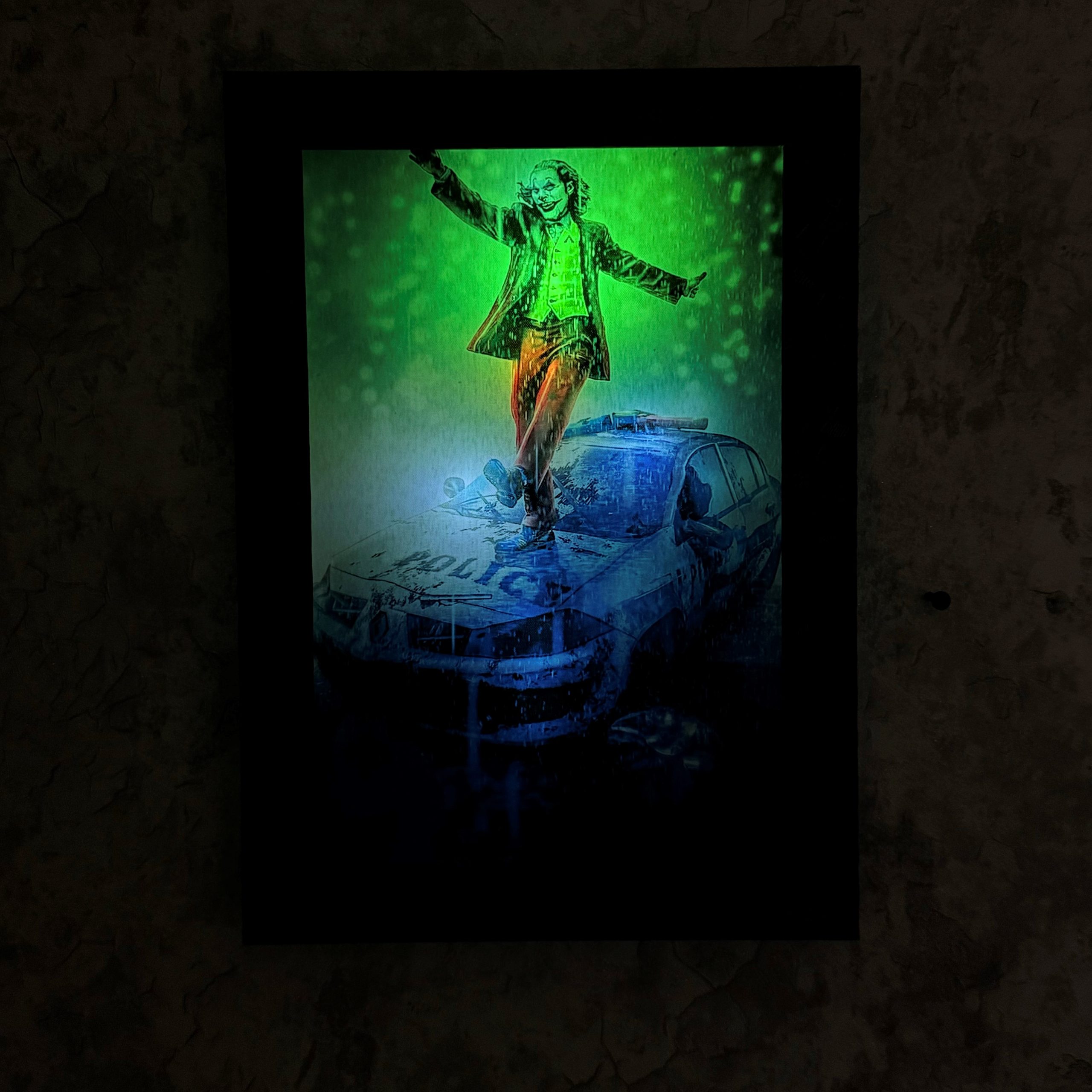 تابلو نوری طرح جوکر یک دکوری متفاوت و خاص برای علاقهمندان به دنیای سینما و هنر است. ترکیب نور LED با رنگهای تند و تضاد بالای تصویر، جلوهای زنده و چشمنواز ایجاد میکند.