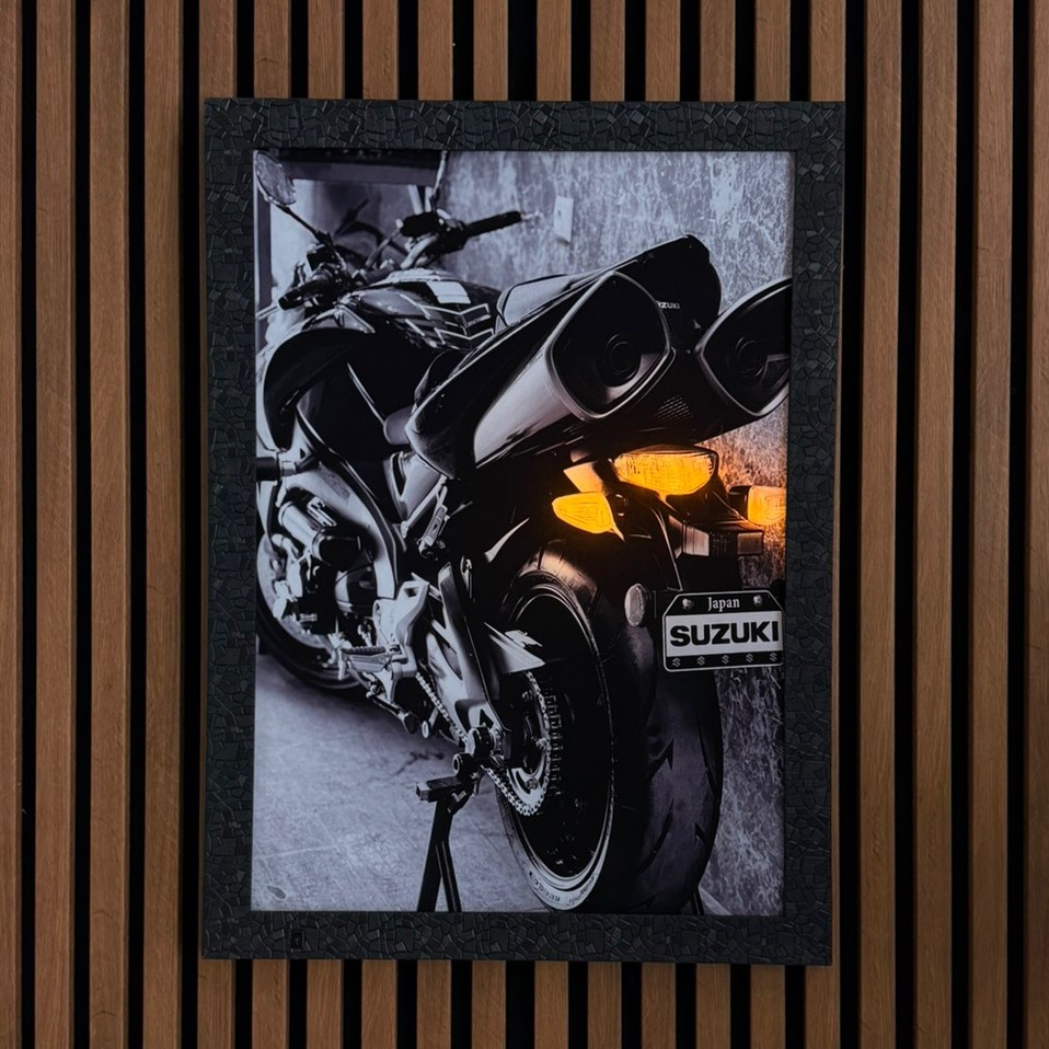 تابلو نوری طرح موتور سنگین سوزوکی یک انتخاب متفاوت و چشمگیر برای عاشقان موتورهای هایپر اسپرت و دکور خاص است.